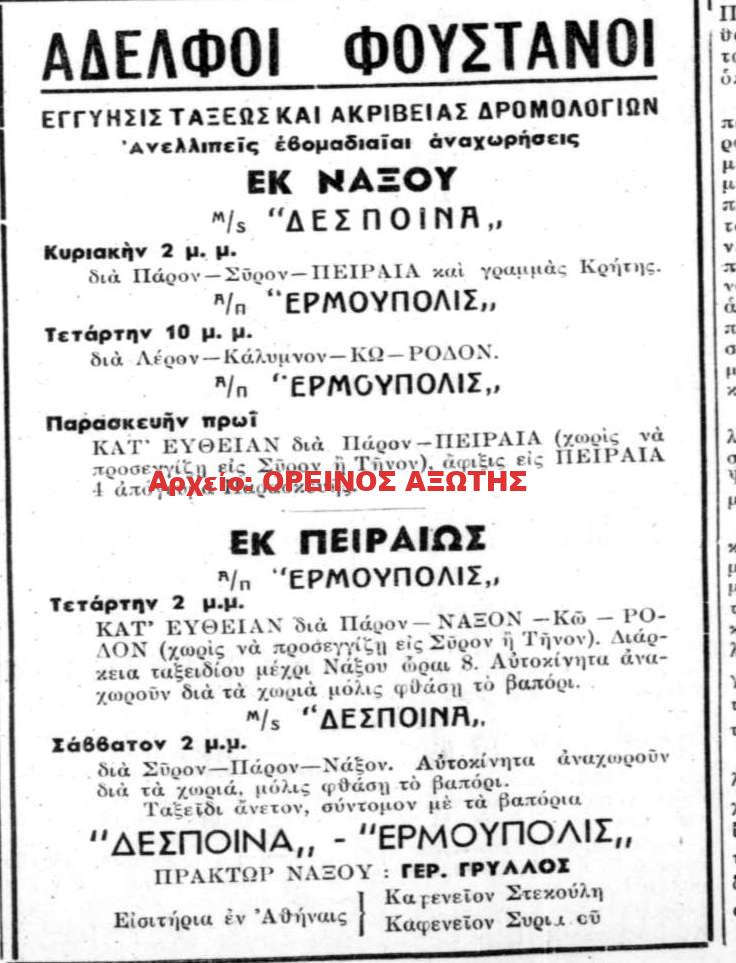 διαφήμιση από την εφημερίδα ΝΑΞΙΑΚΟ ΜΕΛΛΟΝ
