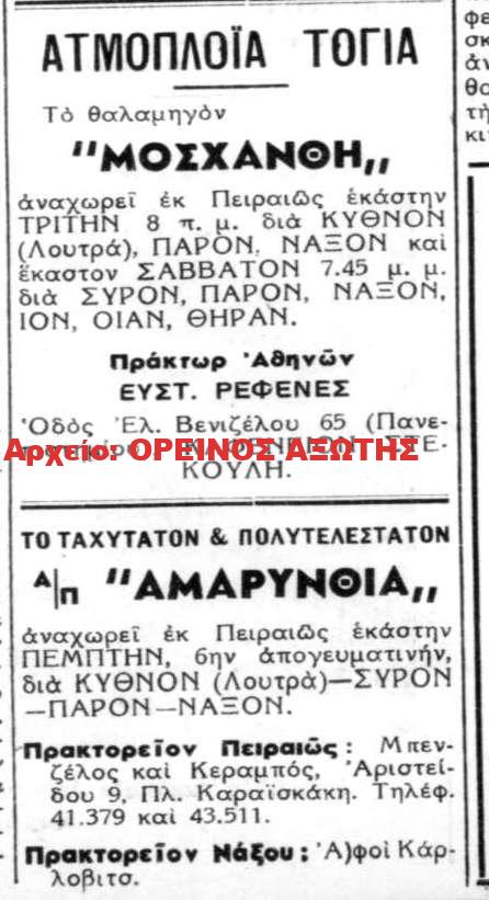 διαφήμιση από την εφημερίδα ΝΑΞΙΑΚΟ ΜΕΛΛΟΝ
