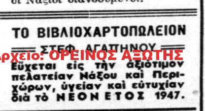 διαφήμιση από την εφημερίδα ΝΑΞΙΑΚΟ ΜΕΛΛΟΝ