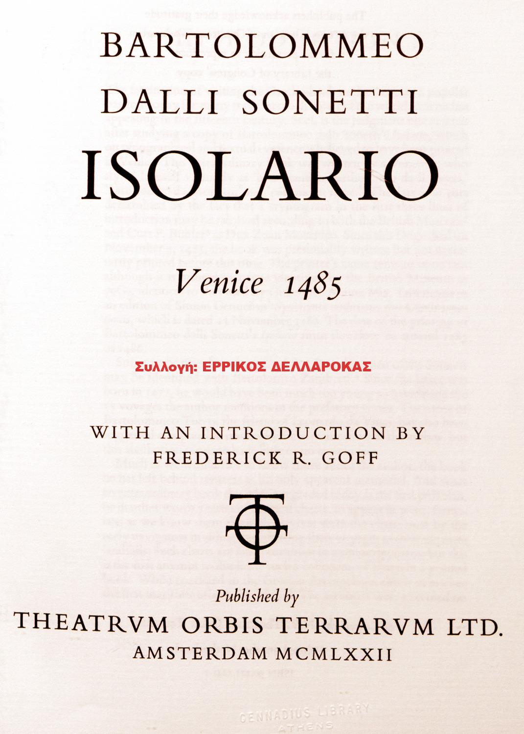 SONETTI, Bartolommeo Dalli. Isolario, Venice 1485