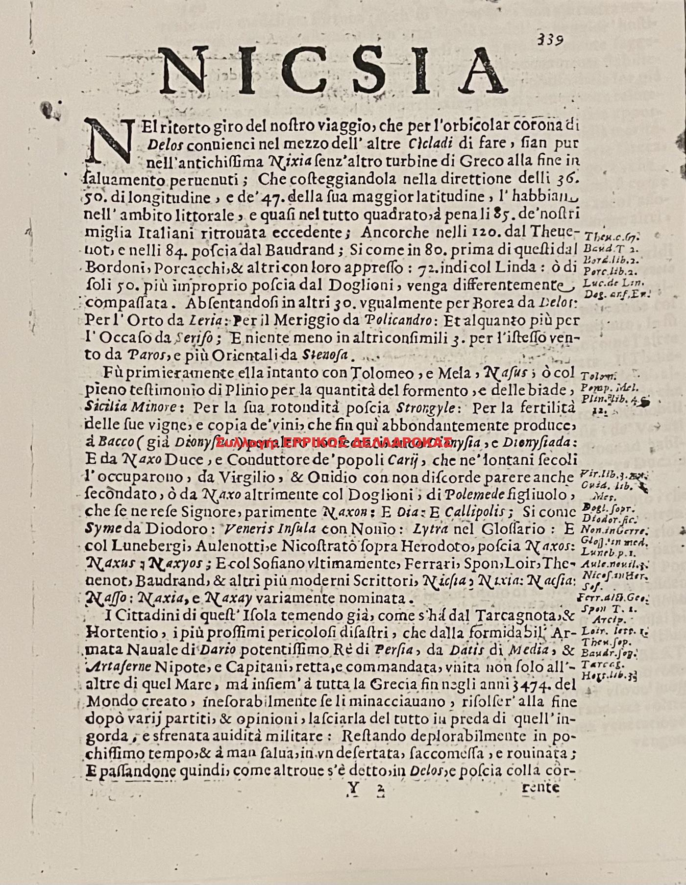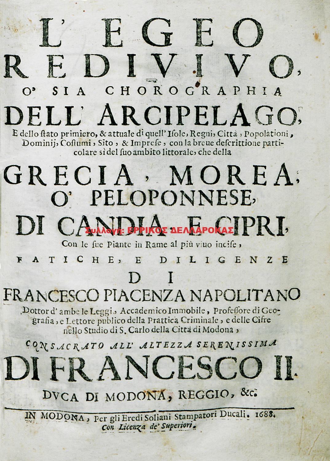 Piacenza’s work was published posthumously. It includes engravings of excellent quality, while the description of the islands covers approximately seven hundred pages; Piacenza sourced this material from earlier isolaria, and nautical and geographical works. Finally, the edition is completed by an extremely interesting index.