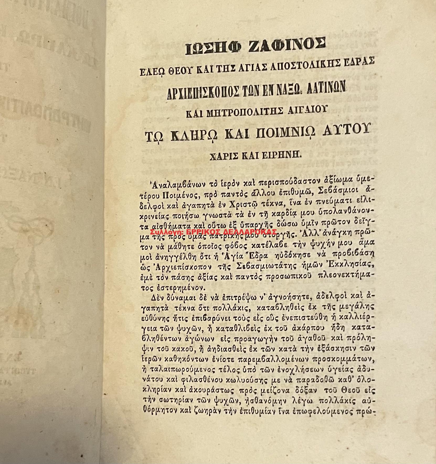 1875 ΠΟΙΜΑΝΤΟΡΙΚΗ ΕΓΚΥΚΛΙΟΣ ΤΩ ΚΛΗΡΩ ΚΑΙ ΠΟΙΜΝΙΩ ΤΗΣ ΜΗΤΡΟΠΟΛΙΤΙΚΗΣ ΕΚΚΛΗΣΙΑΣ ΤΩΝ ΕΝ ΝΑΞΩ ΔΥΤΙΚΩΝ