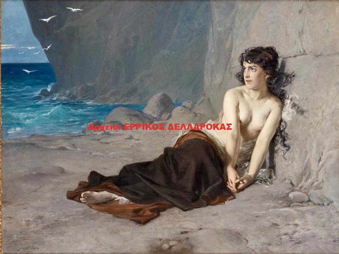 Signed Julius Kronberg and dated Stockholm 1887. Canvas 144 x 190 cm. The frame mounted with later silver plaque inscribed “Adriadne på Naxos”.